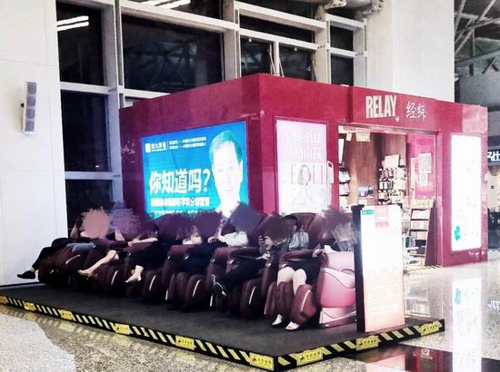 我最近几个星期频繁的飞,看到很多机场空地上,都安装了不少按摩椅。