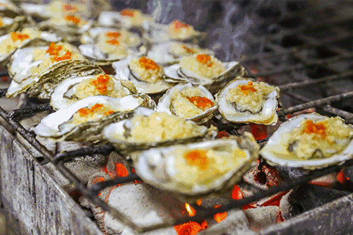 烧烤摊的另一个壮阳类扛把子是生蚝。并不是所有的东北烧烤摊都有资格卖生蚝,因为,只有新鲜的生蚝浸着海水的生猛味道,体态丰盈,色泽油润。蚝身在碳炉上微微颤动渗出汁液,单单是看着就觉得补。