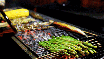 烤腰子当然是有技术含量的,多一分,烤焦了;火候不够,最里面没熟。这几年,有些摊主会切一层肥膘裹在腰子上,在明火烧烤的过程中,肥膘融化,油脂对腰花进行保护滋润。吃的时候,先感受那层油衣的融化,而后,是腰子在口中的跳跃,软嫩得恰到好处,还有一点点隐约的脆感,每个人的表情都很陶醉。
