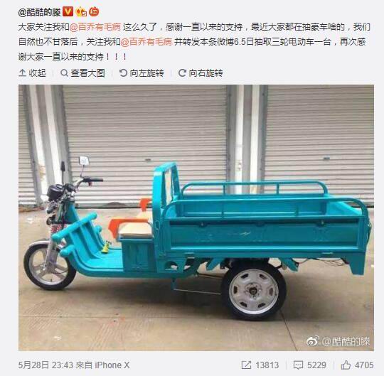 等抽到宝马,我就可以把我的座驾--爱玛换掉了。