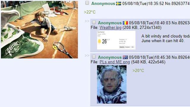 日前,美国匿名讨论区"4chan"出现了一位瑞典人,他痛哭表示:他们摄氏22度的天气让他快要热到融化了。。。