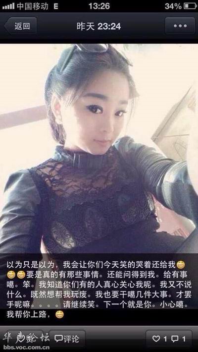 21岁?女孩子?“大姐大”?事先强迫学生“拉线”?在歌厅里从另外的包厢里强拉女生?下迷药使女孩子被性侵?人们敢怒而不敢言?甚至不敢报警?4次收到“买处者”15000元?事发之后毫无畏惧竟叫嚣“要干几件大事”、“下一个就是你”、“小心噶。我帮你上路”?所有的威胁之语充满“杀气”?云县究竟谁家之天下?