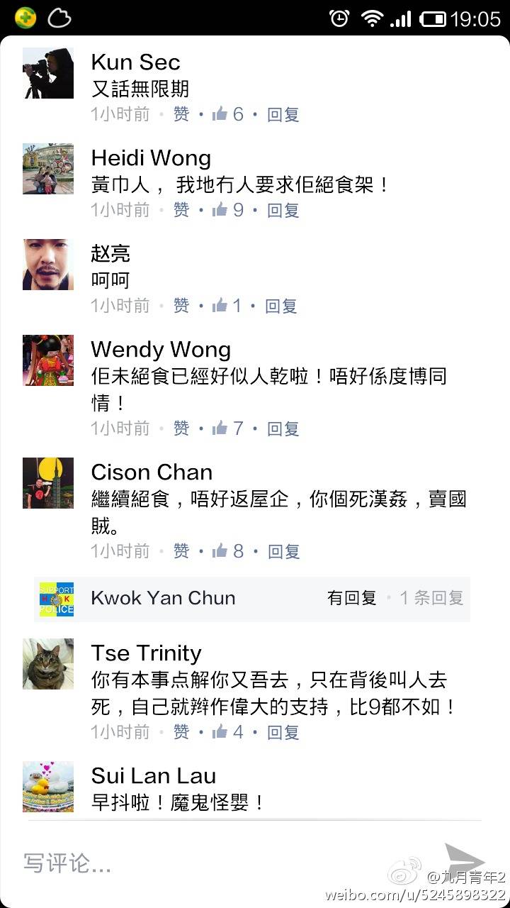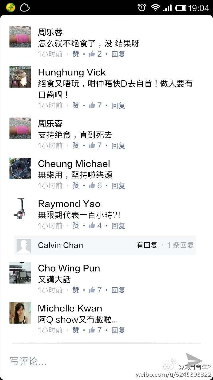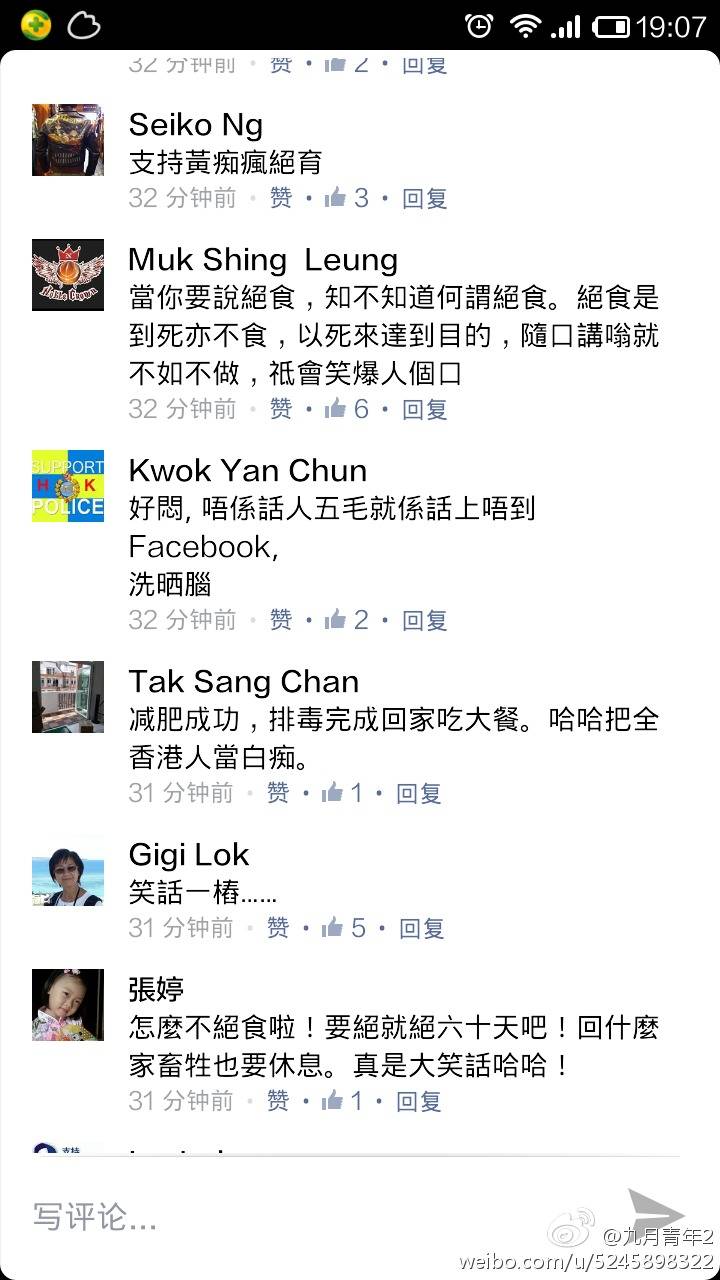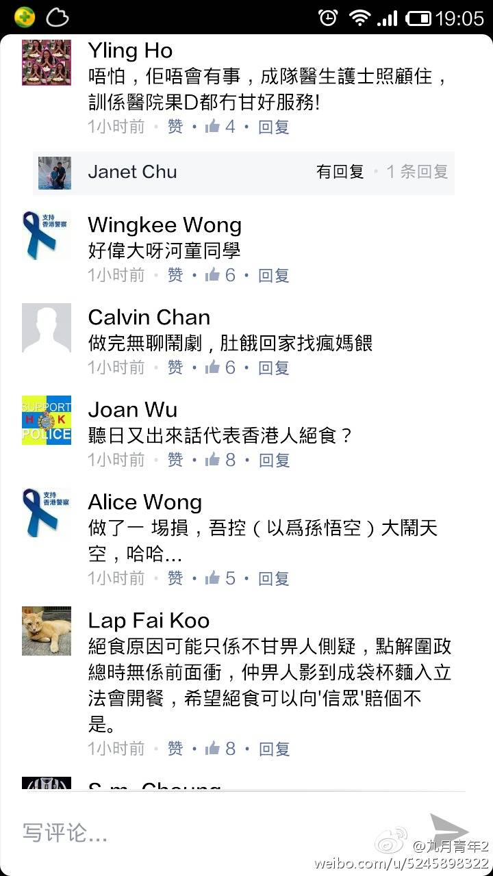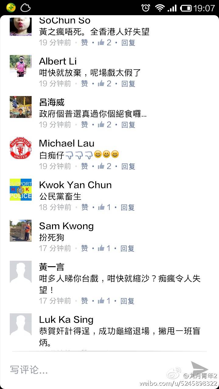 原帖由 Guest from 150.20.120.x 于 2014-12-9 10:07 发表 黄之峰号称绝食为大部分人争“权利”,结果绝食到一半就退出,遭到广大香港人民的唾弃