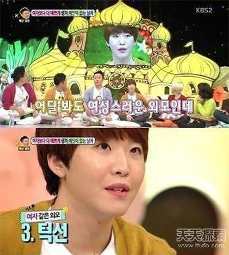 这名韩国男子走上舞台的瞬间,主持人便因其细长的眉毛、女人般的红唇以及圆滑的下巴线条而大吃一惊。就韩国女团T-ara成员咸殷晶也不由感叹:“真羡慕啊!”