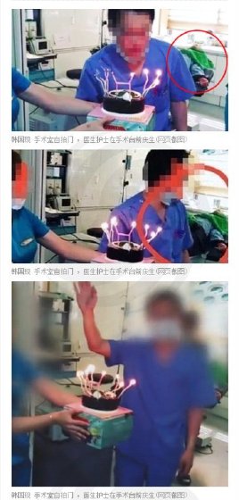 首尔市江南区一家著名整形外科医院的医护人员在病人的手术台前吹蜡烛庆祝生日的照片在网上广泛流传,引起了很大争议。难怪手术前一定要家属签字,原来是为了开脱医生的种种荒唐行为。不管怎样解释韩国的整容医生都不可信!