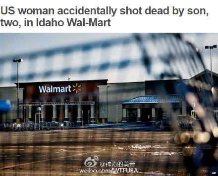 在爱荷华一家沃尔玛里,一个两岁的小孩子把手伸到妈妈口袋里玩,没想到口袋里有一把枪,小孩子意外扣动了扳机,妈妈当场死亡。。。小朋友怎么都不会明白发生了什么吧,可是妈妈就这样没了,so sad。。。