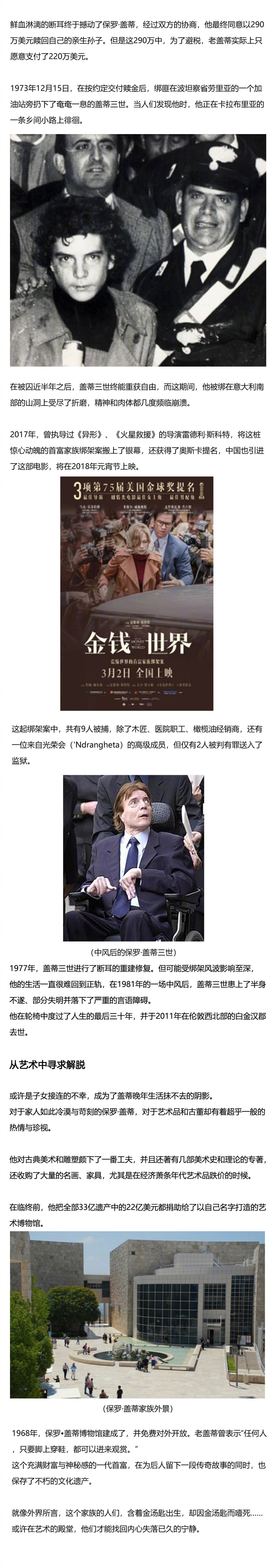 他们是曾经稳坐世界首富位置的家族,他们也是经受着“诅咒”的家族:子女接连不幸,孙子被黑帮绑架并残忍割耳…他们含着金汤匙而生,又因这金汤匙而噎死。如果要问,金钱到底能不能买来幸福,保罗·盖蒂家族可能会沉思良久