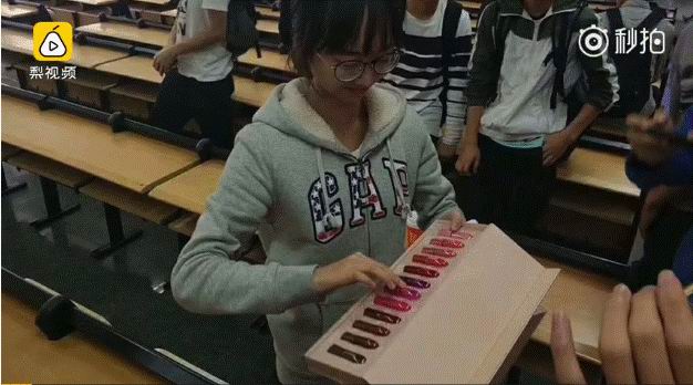 说昨天女生节,广东广州华南理工大学大一机械三班的男生,给班上唯一的女生送了盒口红。因为怕色号不对,于是就买了一整套。
