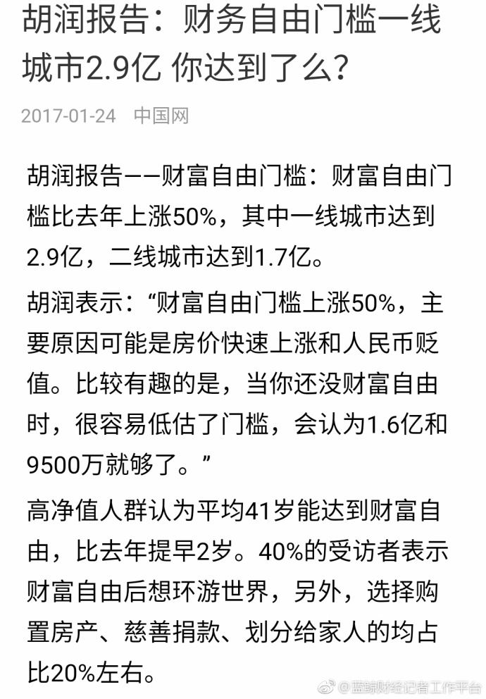 我认真的算了一下,一线城市财物自由2.9亿,我大概差不到3个亿就实现了。