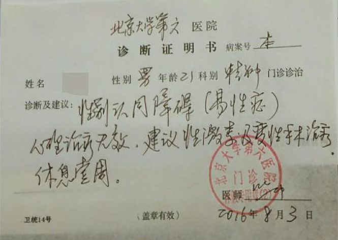 那个假期,小羊去北医六院看了心理医生。这一次的诊断结果是性别认同障碍。
