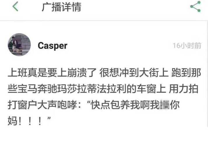 看到一个富人老同学发了个朋友圈:"烦死了"。