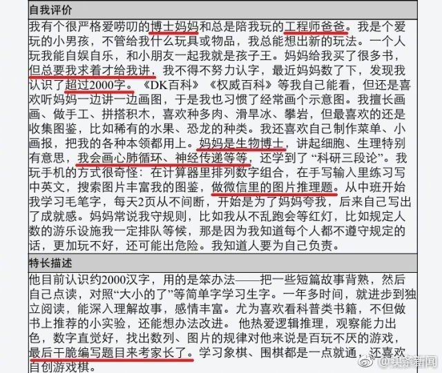 一场8000人只能录取60人的幼升小选拔,引来了一批"懂得核反应堆""学微积分"的优秀的幼儿园"牛娃简历",这些被戏谑"超过爱因斯坦"的神童,近几天正在朋友圈刷屏。