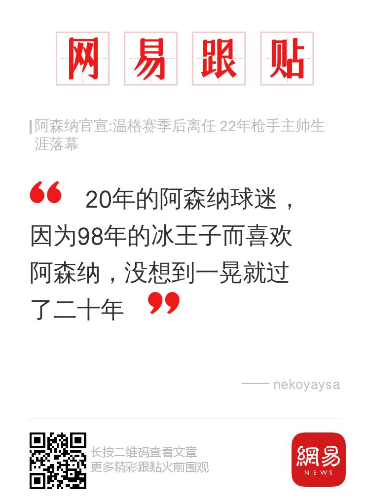 多少人刚开始看球时,温格就在阿森纳的?!科比退了,邓肯也退了,大小罗不在了,现在温格也要离开阿森纳了,这就是青春啊!