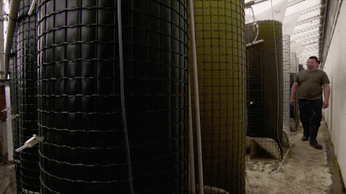 生蚝确实是一出生就带着壳的!而且从一出生就跟爹妈吃着一样的微生物,养殖场就把他们圈在下图的大圆筒里养着。