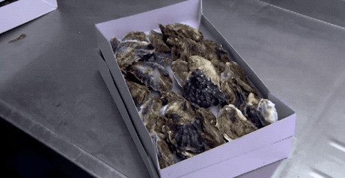 用于繁育的牡蛎年龄在 2~10 岁,每年的 5~8 月是自然繁殖期,这个时候味道会差一些,现在不吃就要过季了...(?﹃?) 工人会把牡蛎放到 20~30℃ 的海水里,促进排卵。母牡蛎排出卵子,公牡蛎喷出精子,受精过程就在水里完成了~