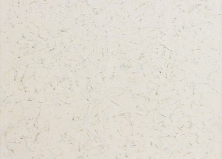 这幅画名为《无题》,由现年84岁的纽约艺术家雷曼(Robert Ryman)创作于1961年,是一幅几乎完全空白、48.75寸乘以48.75寸的正方形油画。画作以有质感的白色颜料上色,带有一点蓝色和绿色的痕迹。
