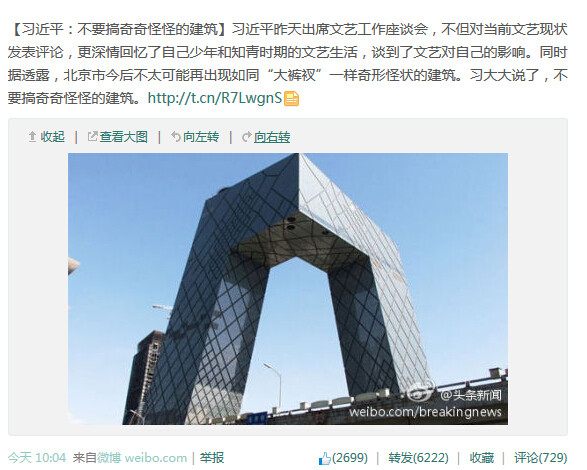 “。。。习近平:不要搞“奇奇怪怪的建筑”。。。”