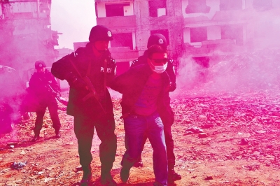 据悉,此次实战演习为检验公安机关的快速反应、合成作战等能力,强力震慑各类违法犯罪活动。郑州全警动员,特警、交巡警、刑侦、治安、消防等各警种参战,警用直升机、反恐突击车等各类警用装备也悉数登场。演习完全模拟实战,各参战警种事先对警情一无所知,全部在现场根据警令变化快速反应。