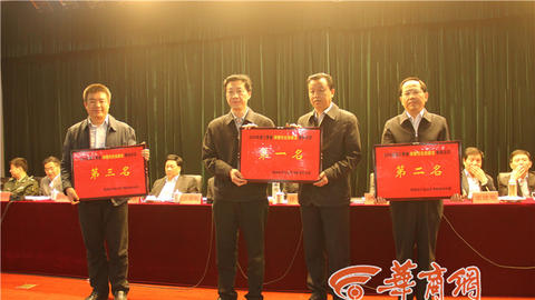 下午4时许,通过渭南市考核办对全市13个县市区的第三季度固定资产投资与重点建设、财税工作、住房保障工作、安全生产、小城镇建设及环境保护六方面的工作考核,评选出各自项目中的前三名和最后一名,分别为其颁发红牌和黄牌。