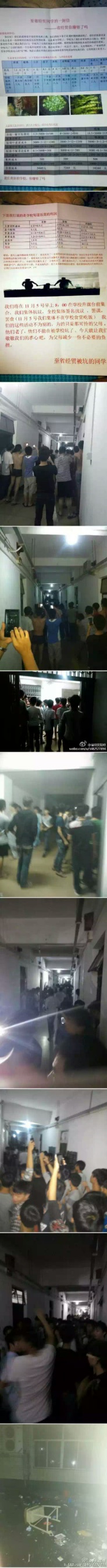 据学生称,此次抗议缘起于校内食堂的昂贵。“菜牌上明明写了价格,但一份饭打下来,往往要比菜牌贵上几块钱。”李同学说,小卖部和医务处的价格也令大家无法接受,“一瓶矿泉水外面卖2元,这里就要3元,易拉罐的可乐比外面贵5毛,塑料瓶装的可乐卖4块”。