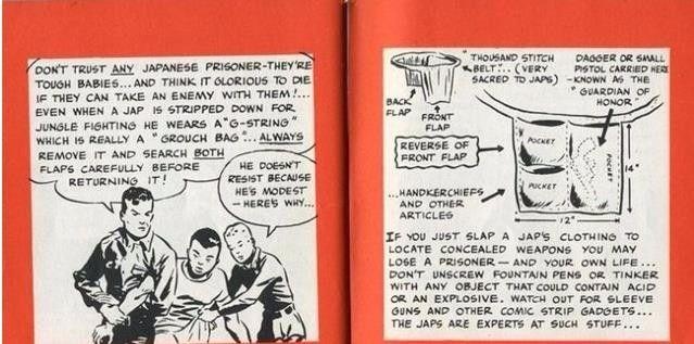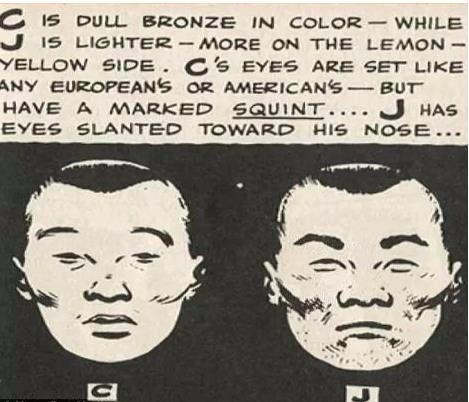 其实早在二战时期美国人就很头痛这个问题了,1942年为援助中国抗日战争,美国政府战争部(War Department)还真给士兵们发了一本名为"Pocket Guide to China"的小册子。画中的日本人肤色、眼睛、皮肤、牙齿都跟中国人不同,中国人皮肤接近暗棕色,而日本人相对肤色更浅一些中国人的眼睛与欧美更接近, 日本人眼睛靠拢鼻子。还有,中国人皮肤更光滑,留胡子的少,日本人毛发更浓密等等,总的来说就是日本人长相不如中国人,日本人哭晕在厕所。