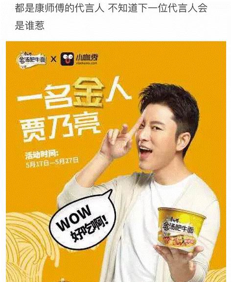突然发现,康师傅的2017代言人基本全被绿了(陈羽凡,王宝强,贾乃亮),坐等2018年代言人。