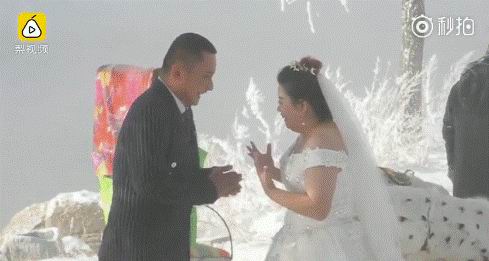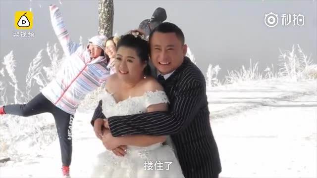 近日,吉林市丰满区,零下17℃的松花江边,雾凇团簇,白皑皑一片十分好看。一对新人专程到此处拍婚纱照,新郎新娘被冻得瑟瑟发抖。