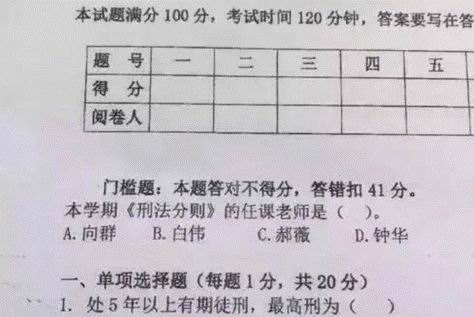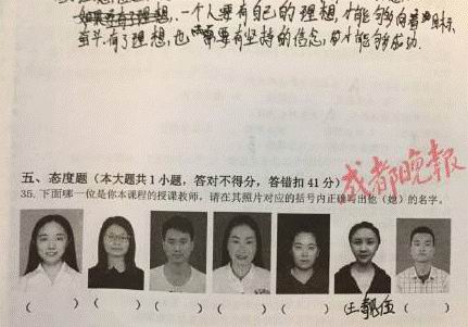 认出并准确写出自己思修老师的名字……答对不得分,一旦答错,直接扣掉41分。