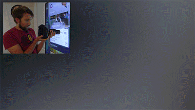 其中一台以近距离捕捉电视屏幕上的画面,