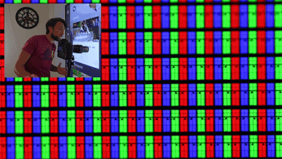 这些密密麻麻的方形红绿蓝色块作为「亚像素」,