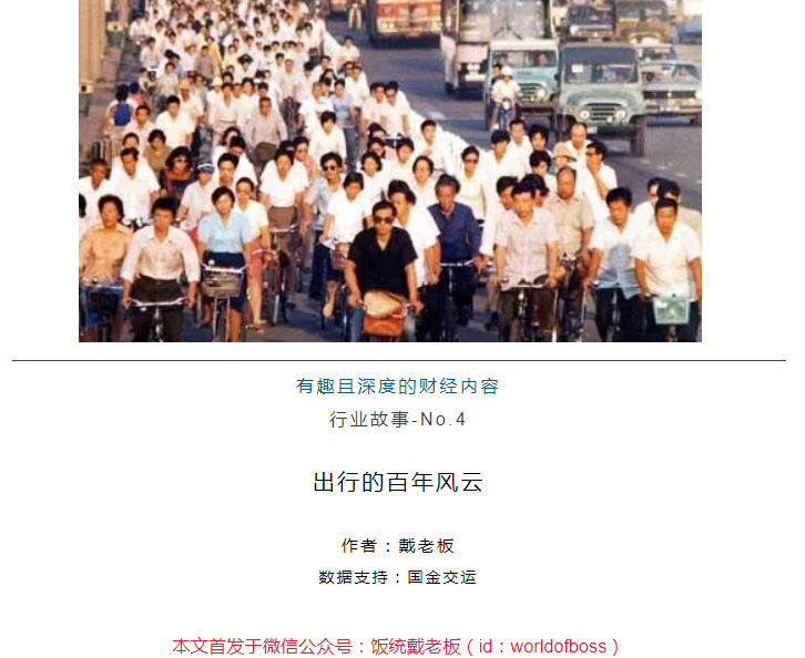 从更广阔的角度来看,14亿中国人,“衣食住行”中任意一项,都可能诞生伟大的生意,而“出行”又是具备网络化和垄断化潜力的领域。因此,在中国人出行这个战场上,尽管过去百年的历史波澜壮阔,但未来恐怕会继续硝云弹雨精彩无比。
