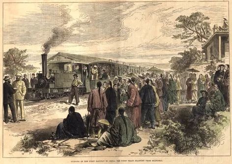 怡和洋行闻讯大喜,马上组织买地。由于沿线居民的阻挠,英国人不得不开出高价,成就了史上第一批因拆迁致富的上海人。到了1874年12月,英国人已经陆续买下了上海闸北至吴淞口之间长9.25英里、宽15码的地皮,于是立马动工。1876年6月,中国第一条铁路建成通车。