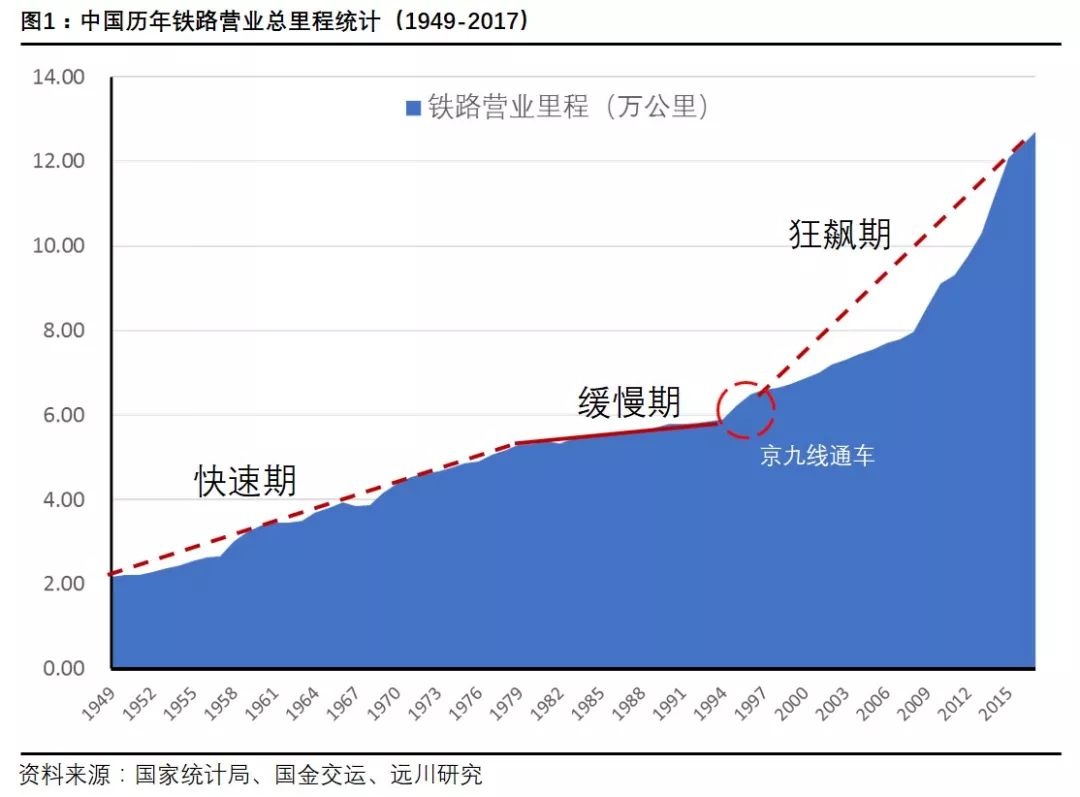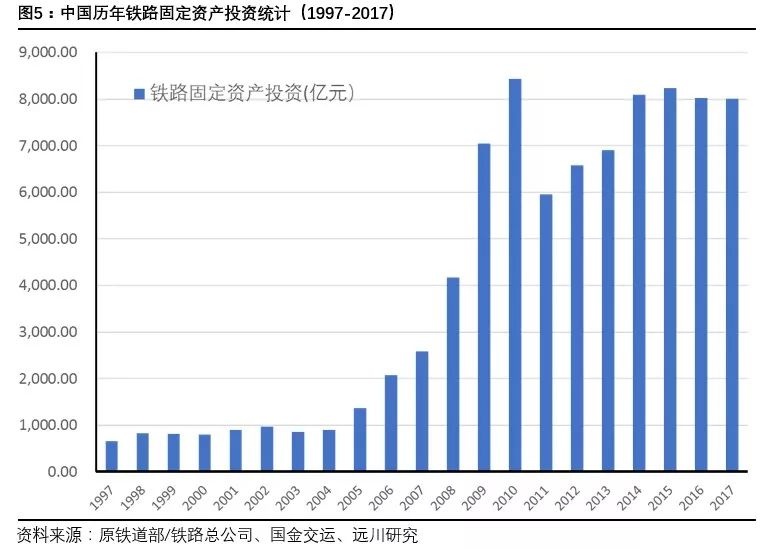 在京津高铁开通的5年前,铁路部迎来了新部长。一年之后,振奋整个铁路行业的《中长期铁路网规划》出台,中国铁路“跨越式”发展的“四颗龙珠”开始被逐渐集齐。例如,03年之后铁路建设者们遇到了GDP连续两位数增长的时代,中央政府投资意愿和能力大幅提升,铁路系统在09年四万亿中更是获得巨资支持。