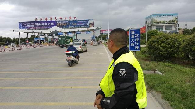 湛江海湾大桥,放水抽烟观察收费站