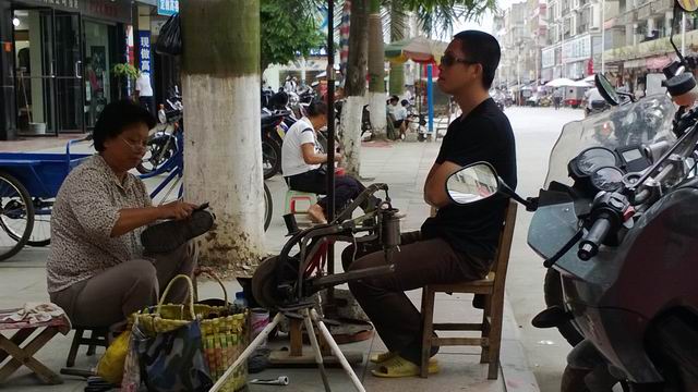 估计是港台黑帮影片看多了,擦个鞋也戴黑超