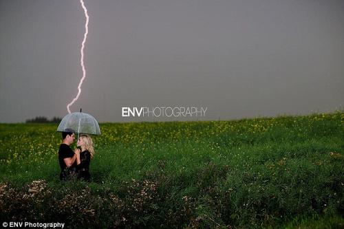 摄影师拍摄出一张令卡珊德拉和克雷格永生难忘的照片——以闪电作为背景
