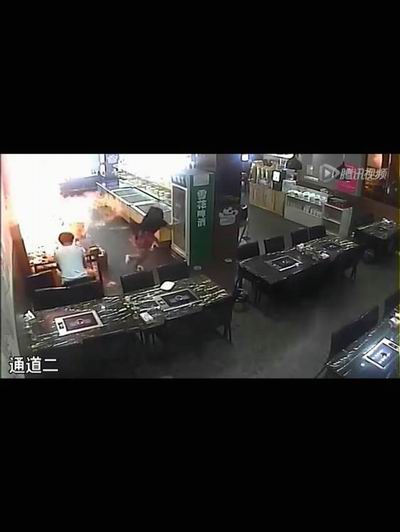 女生吃烧烤被大火瞬间包围 服务员误倒酒精所致