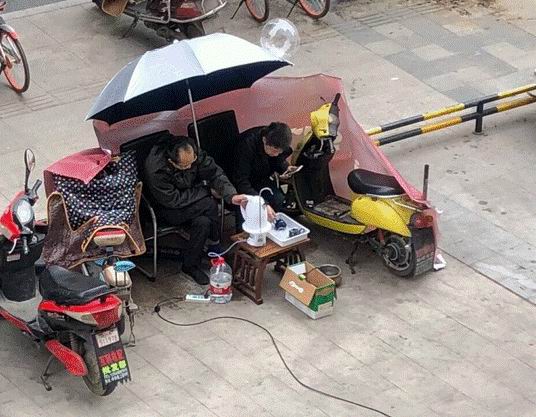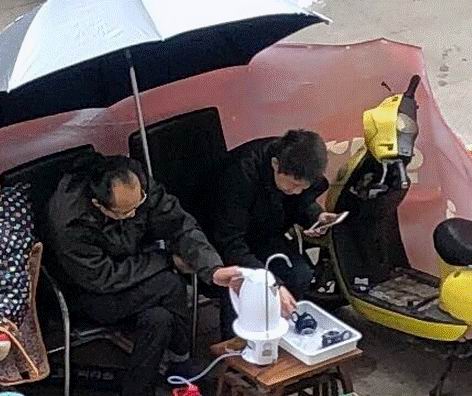 成都人的安逸无处不在,喝茶是一种信仰,风雨无阻,没条件也要创造条件。