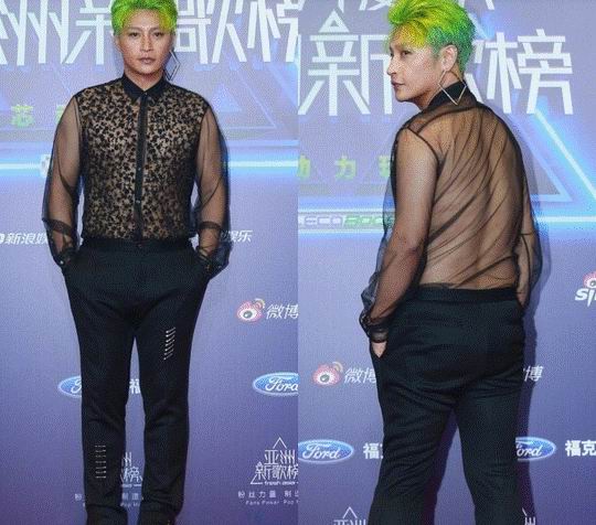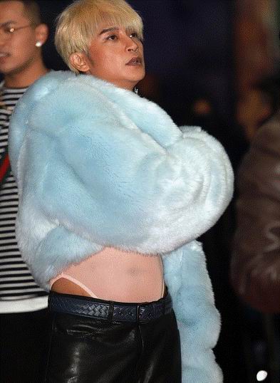 前几天,陈志朋老湿再次骚出新高度,透视马甲搭配皮草外套。