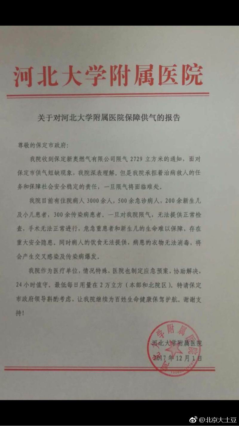 现在连医院都供不上暖了。(北京大土豆)