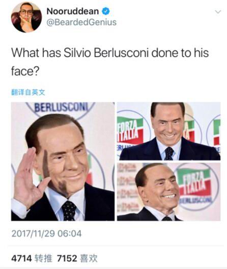意大利前总理、81岁亿万富豪贝卢斯科尼最近公开亮相时笑容僵硬得奇怪。有人疑问"他对自己的脸做了什么?".(谷大白话)