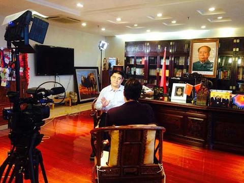 陈光标在办公室内接受荷兰国际新闻电视台驻北京记者的采访。