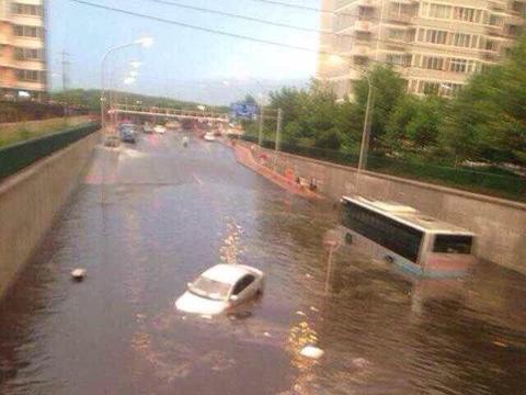 7月16日晚7时左右,一场暴雨让海淀区田村东路铁道桥下路段,变成了一个巨大的池塘,18辆途经此处的车辆被淹。