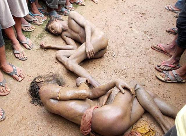 印度境内的有个叫Kaliabazar的小村庄近日发生杀人案。一名年仅7岁的女孩被吊死在一棵树上。当地人表示,这是一起强奸杀人案,并找到三名“犯罪嫌疑人”:一名巫医及其两个助手。 村民们先是将这三名男人痛殴一顿,然后将其衣服扒光扔到街头示众。警方赶到现场后将三人送往医院,其中一人因抢救无效死亡,另两人脱险。此前,印度曾发生多次恶性轮奸案,但从没有嫌疑人被殴打致死。