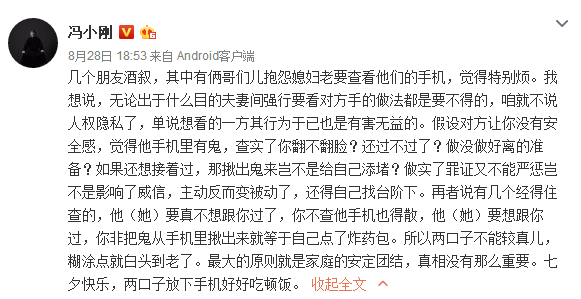 夫妻间该查手机吗?冯小刚一段话发人深思