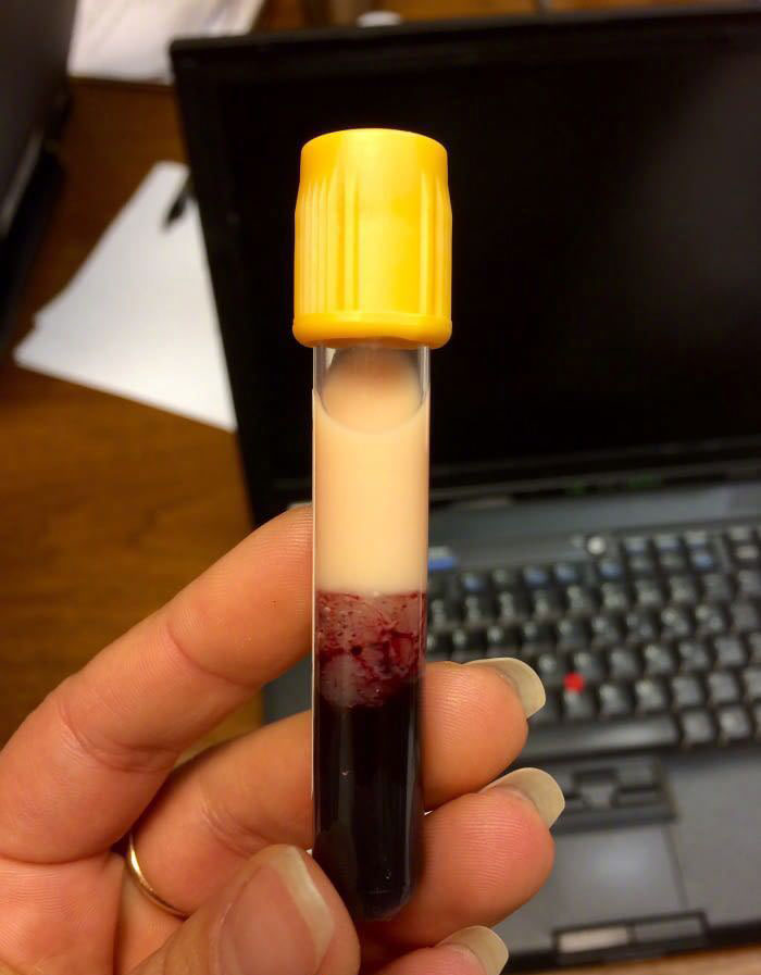 一管脂肪含量很高的血液,大家感受一下...... ​