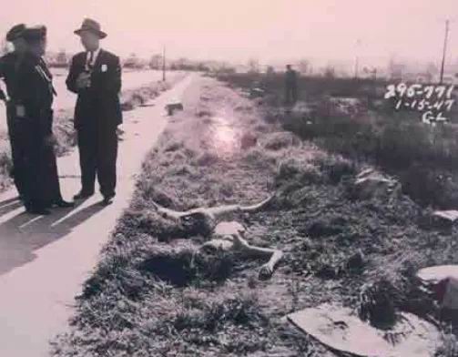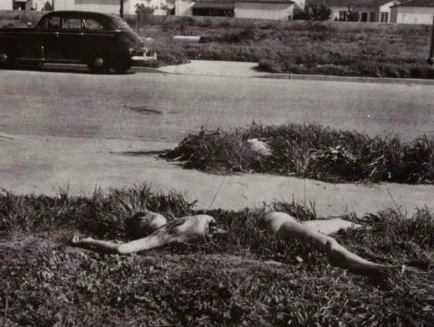 1947.年.1.月.15.日上午.10.点左右,洛杉矶西南部诺顿街区大道,阳光明媚、晴空万里,一名家庭主妇带着自己的小女儿去鞋匠铺送修鞋子,在走过一片空地的时候,她看到路边的草丛中好像放着一个残破的人体石膏模特,可等她走近才发现:那根本不是什么「模特」,而是一具被肢解的女尸。