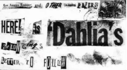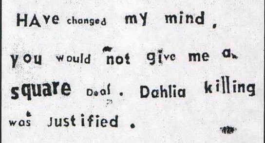 第一封信,是.1.月.23.日随着一个包裹寄给洛杉矶一家报社的,包裹中有许多肖特的个人物品,其中包括肖特的社保卡、通讯录和一些其它证件,信上的字是用报纸上剪下来的字母拼贴出来的,内容是:这些是大丽花的东西,(我)还会有东西寄来。