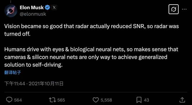 马斯克长期为纯视觉路线摇旗呐喊