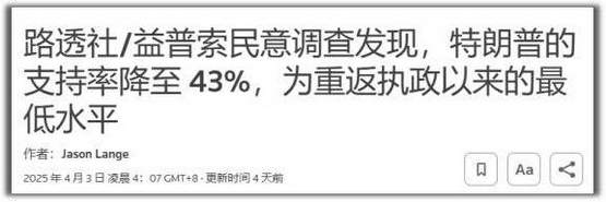 目前,他的支持率只是小跌到 43% 而已。